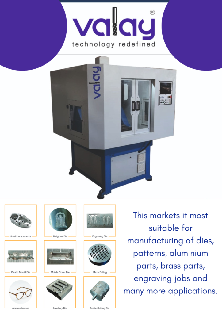 “valay” is a Sanskrit word for curvature. As the name denotes, it is expert in machining precision curvature geometry. We welcome you on board to come and experience our valay range of products from mini VMC to engraving applications.
